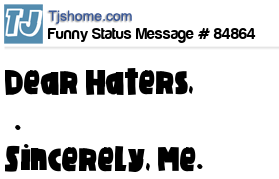 - # 72727 Dear haters: "Thank you for reminding me that I'm everything that you can never be"