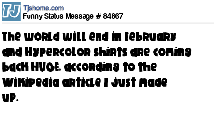X is The world will end in February and Hypercolor shirts are coming back HUGE, according to the Wikipedia article I just made up.