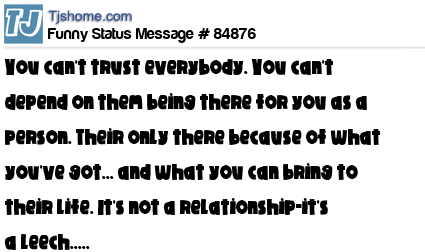 X says you can't trust everybody. You can't depend on them being there for you as a person. Their only there because of what you've got... and what you can bring to their life. It's not a relationship-it's a leech.....