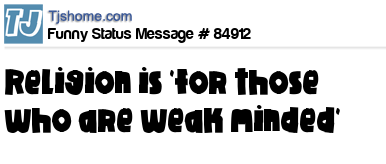 - # 35137 Religion is a crutch for weak-minded people who need strength in numbers.