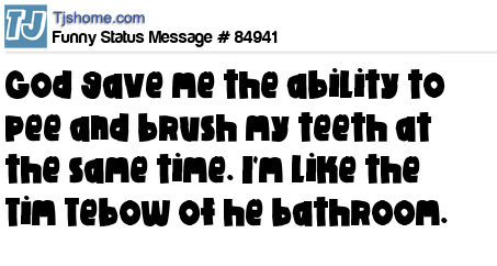 X God gave me the ability to pee and brush my teeth at the same time. I'm like the Tim Tebow of he bathroom.