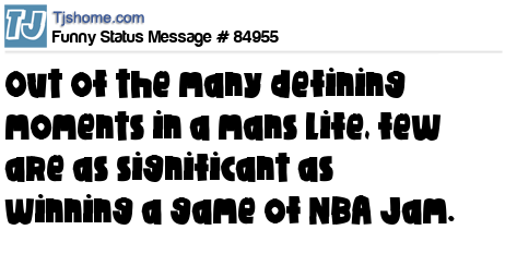 X Out of the many defining moments in a mans life, few are as significant as winning a game of NBA Jam.