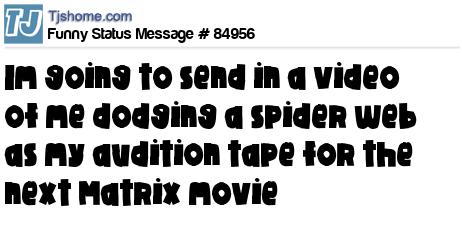 X  im going to send in a video of me dodging a spider web as my audition tape for the next Matrix movie