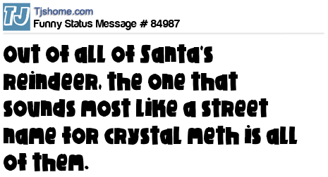 X Out of all of Santa's reindeer, the one that sounds most like a street name for crystal meth is all of them.