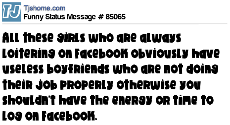 X says All these girls who are always loitering on Facebook obviously have useless boyfriends who are not doing their job properly otherwise you shouldn't have the energy or time to log on Facebook.