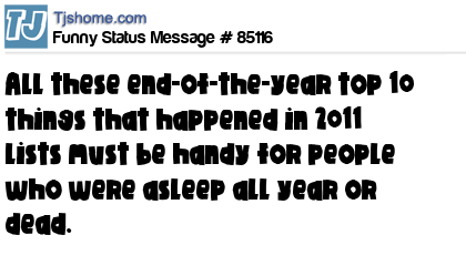 X All these end-of-the-year top 10 things that happened in 2011 lists must be handy for people who were asleep all year or dead.
