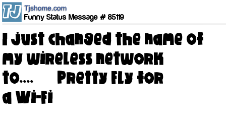 - # 86861 .I just changed the name of my wireless network to....♫ ♪ Pretty Fly for a Wi-Fi ♪ ♫