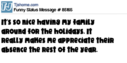 X says It's so nice having my family around for the holidays. It really makes me appreciate their absence the rest of the year.