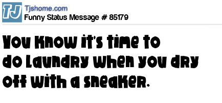 X is You know it's time to do laundry when you dry off with a sneaker.