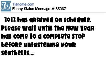 - # 85395 2012 has arrived on schedule. Please wait until the New Year has come to a complete STOP before unfastening your seatbelts....
