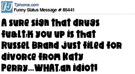 - # 85278 Russel Brand files for divorce from Katy Perry... I wonder if she kissed a girl and he didnt like it.