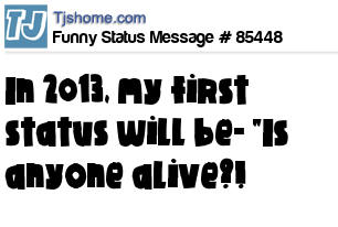 - # 104730 In 2013, my first status will be “is anyone alive?”