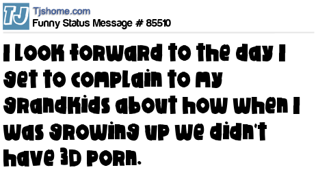 X says I look forward to the day I get to complain to my grandkids about how when I was growing up we didn't have 3D porn.