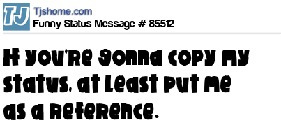 - # 196771 I think those status updates that's say copy and paste this status so I'll know who's reading my status are stupid. Copy and paste this status if you agree.