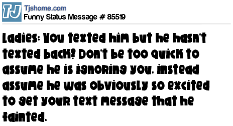 X says Ladies: You texted him but he hasn't texted back? Don't be too quick to assume he is ignoring you, instead assume he was obviously so excited to get your text message that he fainted.