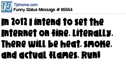 X In 2012 I intend to set the Internet on fire. Literally. There will be heat, smoke, and actual flames. Run!