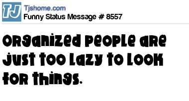 - # 117285 Organized people are just people who are too lazy to look for things.