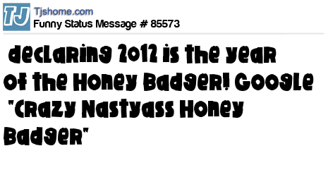 X declaring 2012 is the year of the Honey Badger! Google "Crazy Nastyass Honey Badger"
