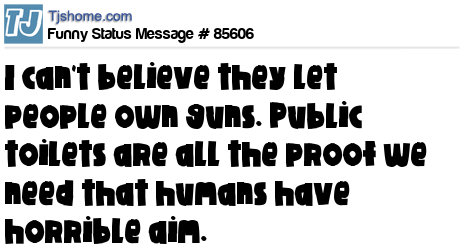 - # 141435 I can't believe they let people own guns. Public toilets are all the proof we need that humans have horrible aim