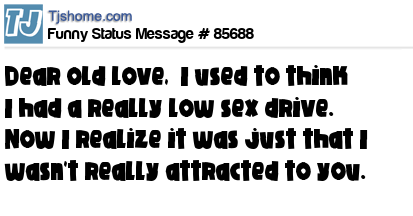 X says Dear old love, I used to think I had a really low sex drive. Now I realize it was just that I wasn't really attracted to you.