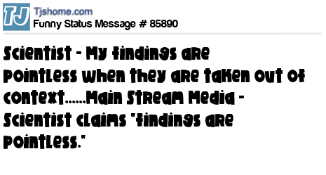 X is Scientist - My findings are pointless when they are taken out of context......Main Stream Media - Scientist claims "findings are pointless."