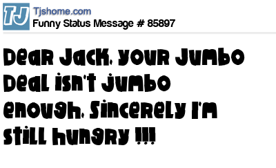 X Dear Jack, your Jumbo Deal isn't jumbo enough, Sincerely I'm still hungry !!!