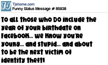X is To all those who DO include the year of your birthdate on Facebook... we know you're young... and stupid... and about to be the next victim of identity theft!