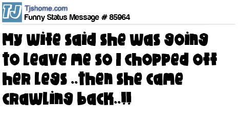 X is My wife said she was going to leave me so I chopped off her legs ..then she came crawling back..!!