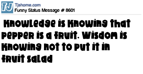 - # 12820 knowledge is knowing a tomato is a fruit; wisdom is not putting it in a fruit salad...