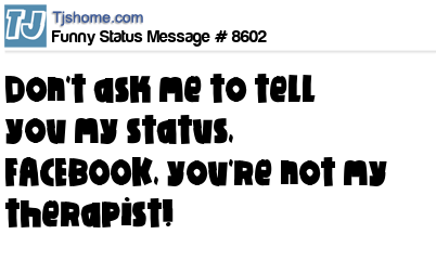 X Don't ask me to tell you my status, FACEBOOK, you're not my therapist!