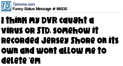 X says I think my DVR caught a virus or STD, somehow it recorded Jersey Shore on its own and wont allow me to delete 'em
