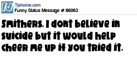 X Smithers, I dont believe in suicide but it would help cheer me up if you tried it.