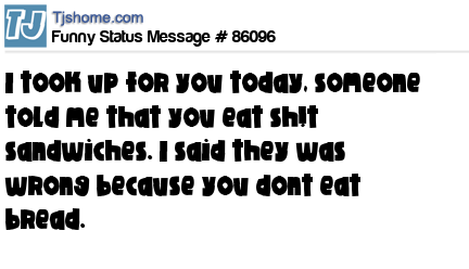 X  I took up for you today, someone told me that you eat sh!t sandwiches. I said they was wrong because you dont eat bread.