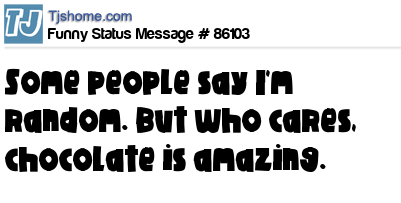 X says Some people say I'm random. But who cares, chocolate is amazing.