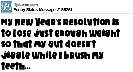X My New Year's resolution is to lose just enough weight so that my gut doesn't jiggle while I brush my teeth...
