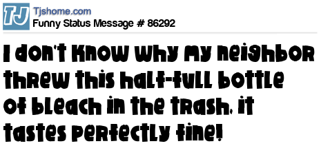 X says I don't know why my neighbor threw this half-full bottle of bleach in the trash, it tastes perfectly fine!