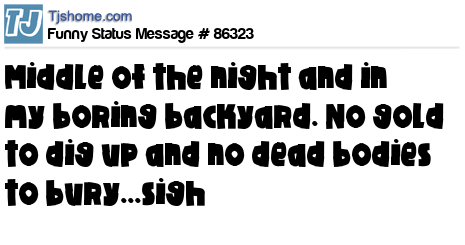 X is middle of the night and in my boring backyard. No gold to dig up and no dead bodies to bury...sigh