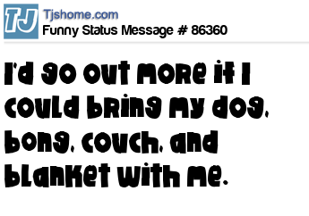 X is I'd go out more if I could bring my dog, b0ng, couch, and blanket with me.