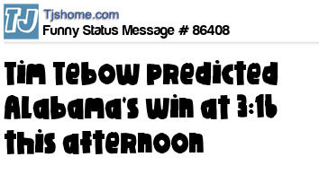 X is Tim Tebow predicted Alabama's win at 3:16 this afternoon