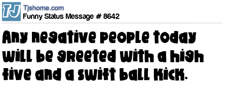 X is Any negative people today will be greeted with a high five and a swift ball kick.