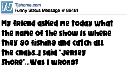 X My friend asked me today what the name of the show is where they go fishing and catch all the crabs..I said "Jersey Shore"...Was I wrong?