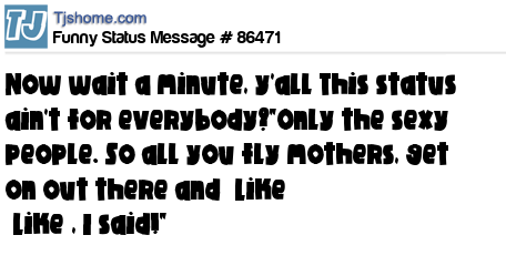 X is Now wait a minute, y'all This status ain't for everybody?"Only the sexy people. So all you fly mothers, get on out there and “Like” “Like”, I said!"