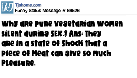 X is Why are pure Vegetarian Women silent during SEX.? Ans: They are in a state of Shock that a piece of Meat can give so much Pleasure.