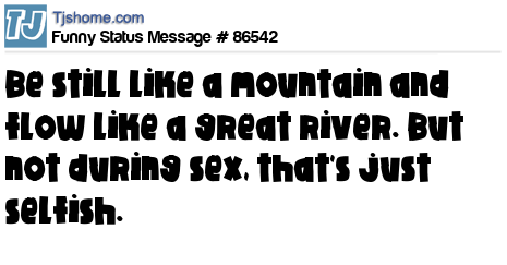 X says Be still like a mountain and flow like a great river. But not during sex, that's just selfish.