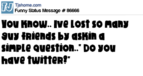 X is You know.. Ive lost so many guy friends by askin a simple question.." Do you have twitter?"