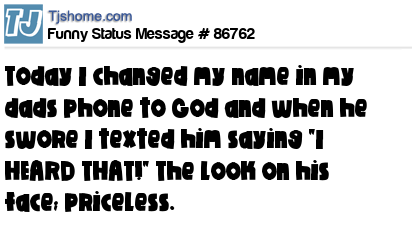 X Today I changed my name in my dads phone to God and when he swore I texted him saying "I HEARD THAT!" The look on his face; priceless.