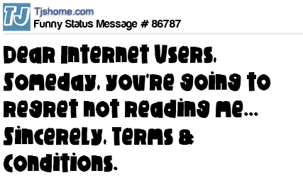 X is Dear Internet Users, Someday, you're going to regret not reading me... Sincerely, Terms & Conditions.