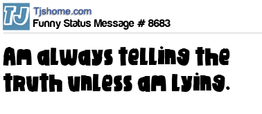 - # 20859 The truth is, when I start a statement with "the truth is" I'm usually lying my @ss off