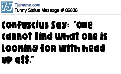 X Confuscius Say: "One cannot find what one is looking for with head up a$$."