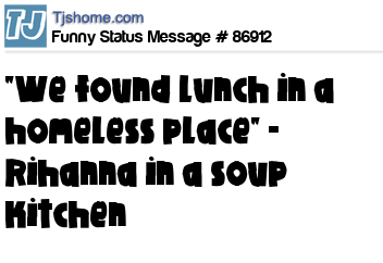 X is "We found lunch in a homeless place" - Rihanna in a soup kitchen